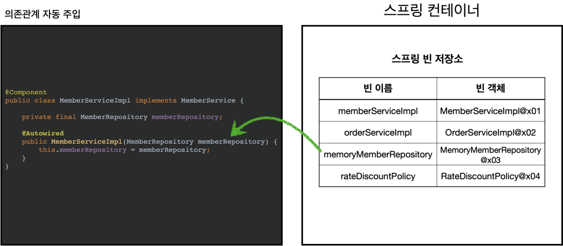 // 의존관계를 자동주입함 (@Component, @AutoAppConfig 생성에 따름)